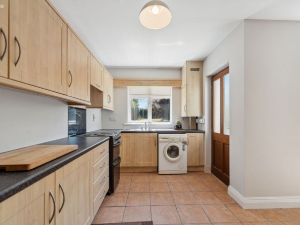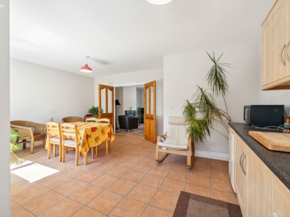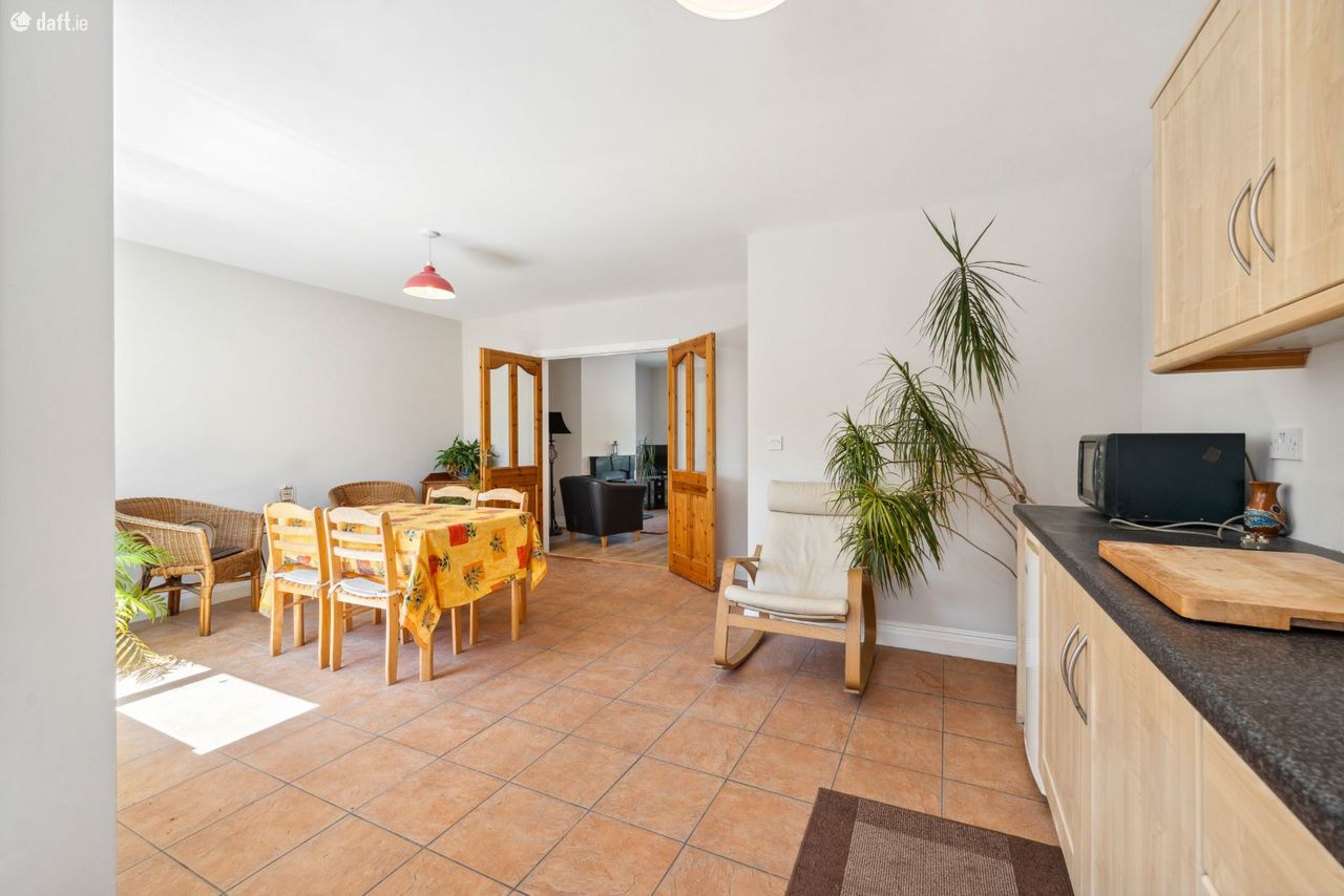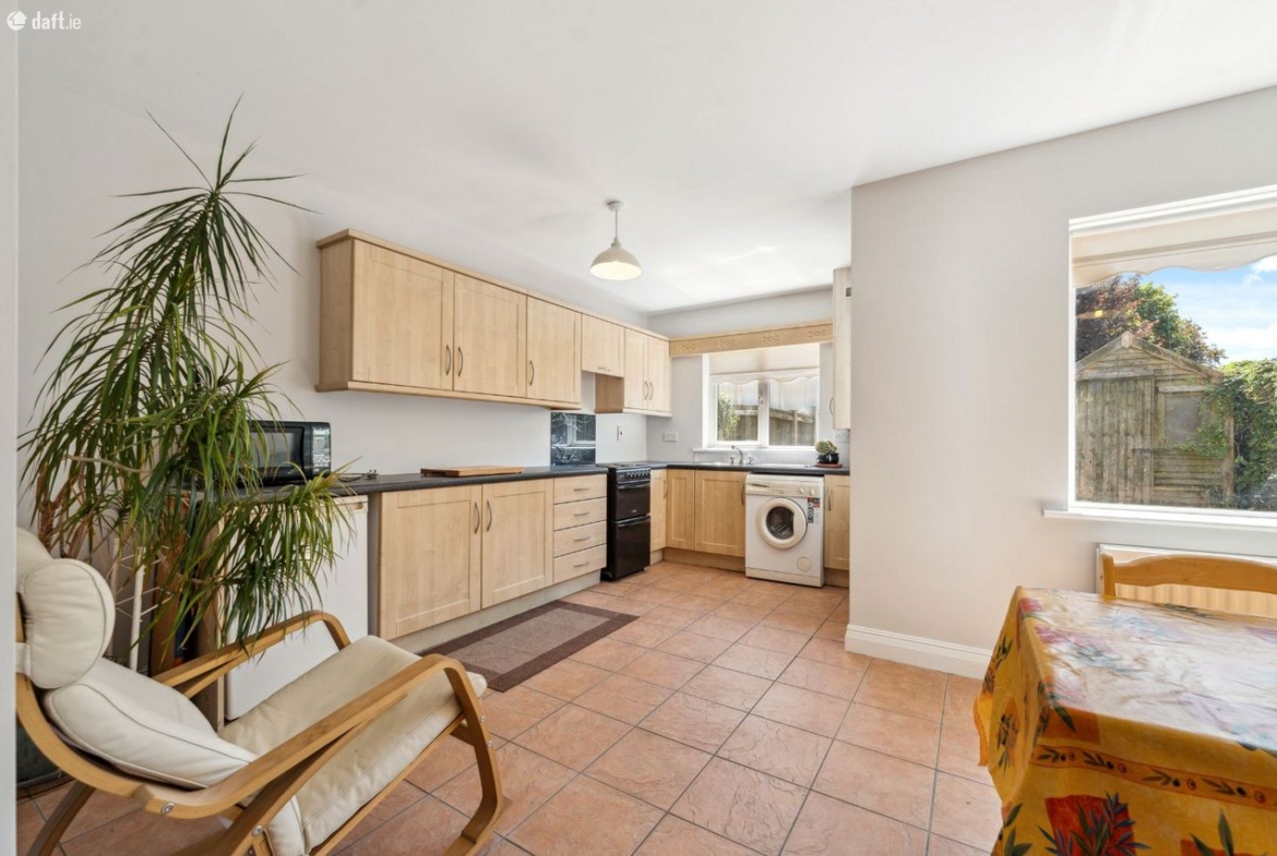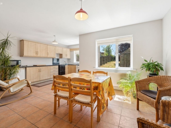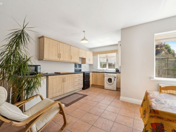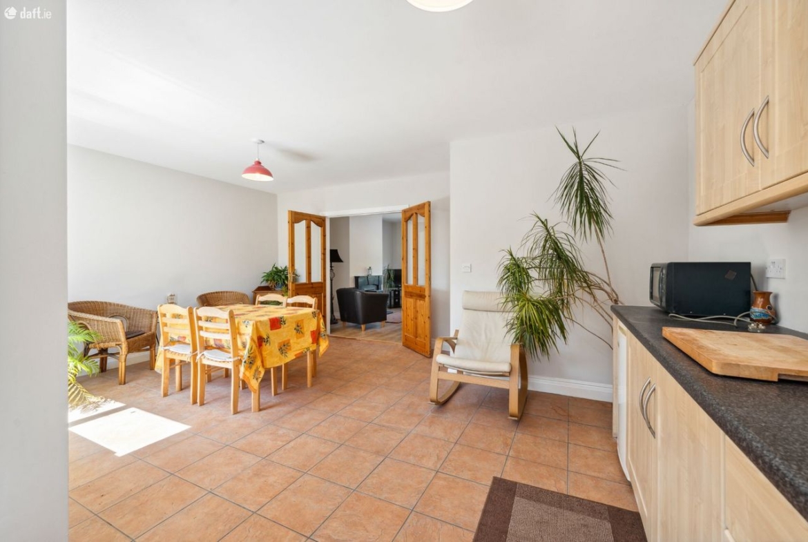 Dining Area: Spacious bright room with fitted kitchen with free standing under-counter fridge, electric cooker, washing machine and microwave.
