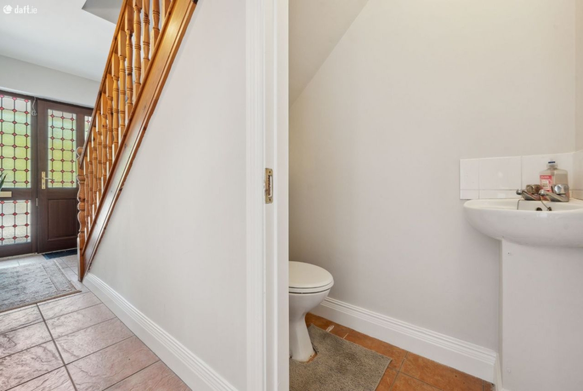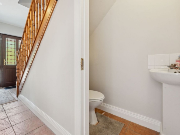 Guest toilet: W.C. and wash hand basin. Tiled flooring.