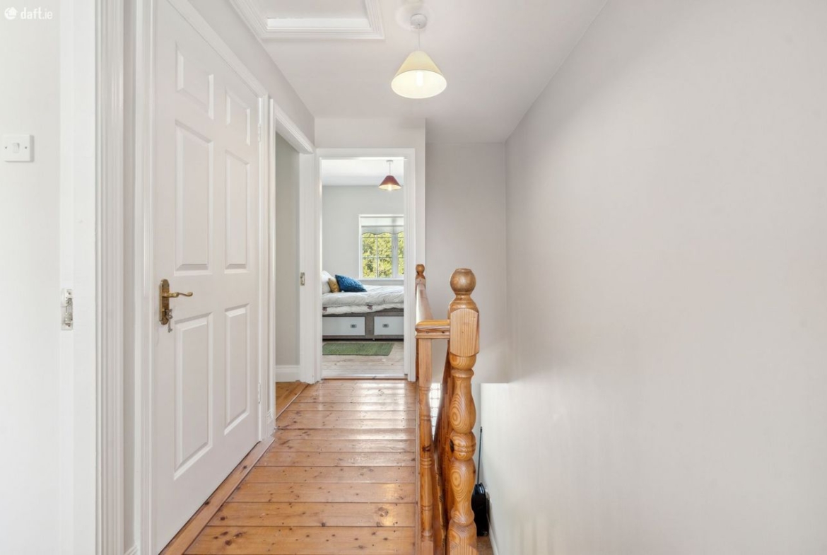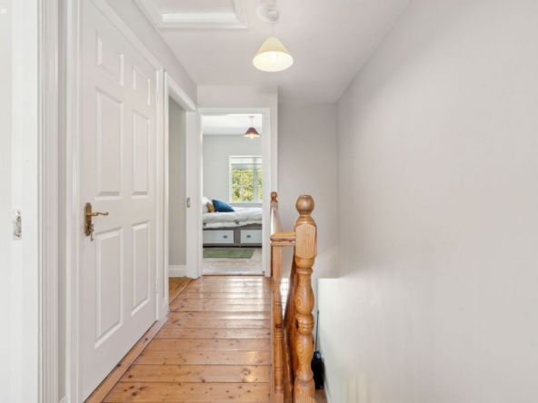 Upstairs: Landing area with varnished pine flooring.