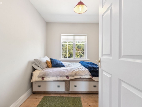 Bedroom 3: Single bedroom with pine flooring.