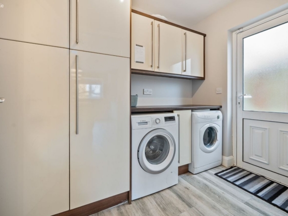 Utility: Fitted units with sink, plumbed for washer and dryer, & door to rear garden.