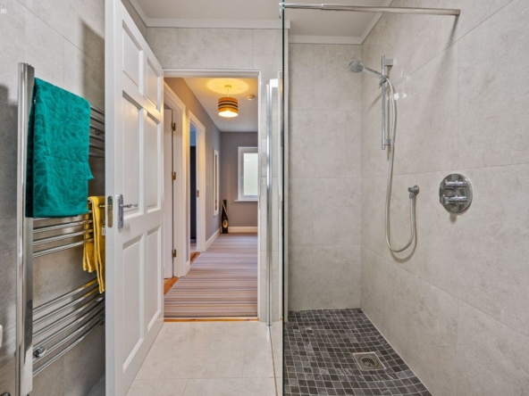 En suite: W.C., wash hand basin and power shower. Fully tiled.