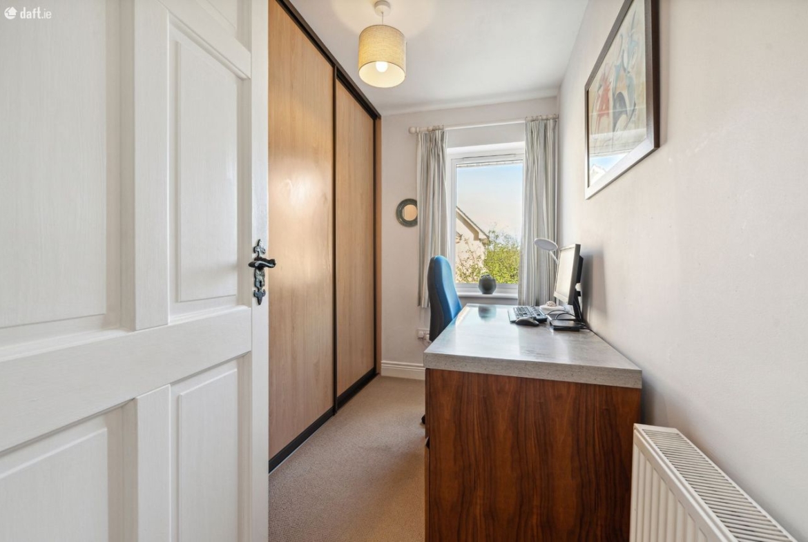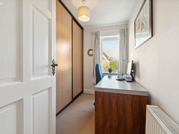 Bedroom 3: Rear aspect bedroom with carpet flooring and slide-robes. Currently used as office.