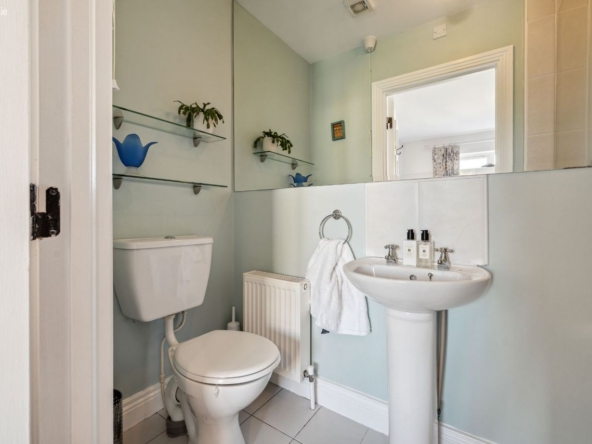 Guest Toilet: W.C., wash hand basin, floor & sink area tiled.