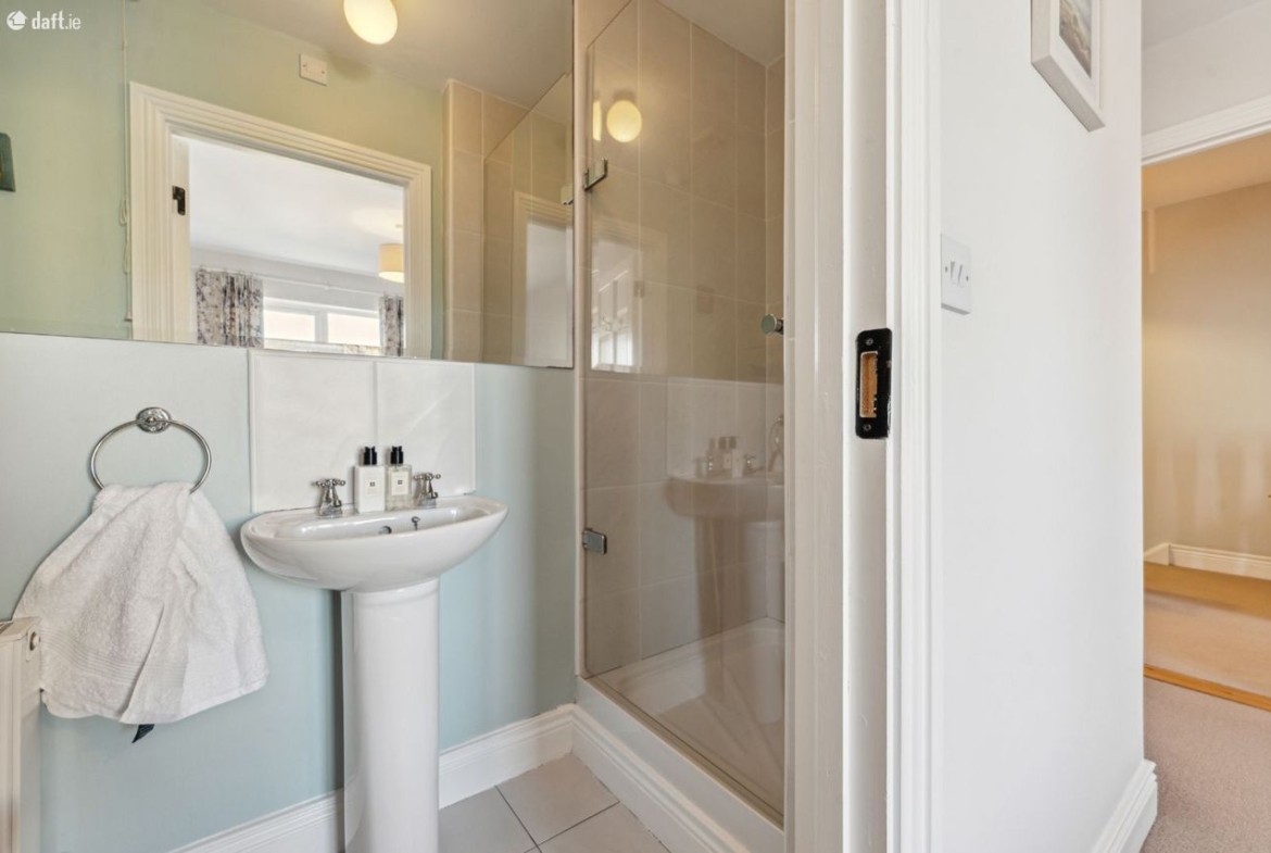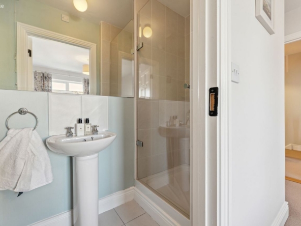 Ensuite: W.C., wash hand basin & electric shower. Floor, sink & shower area tiled.