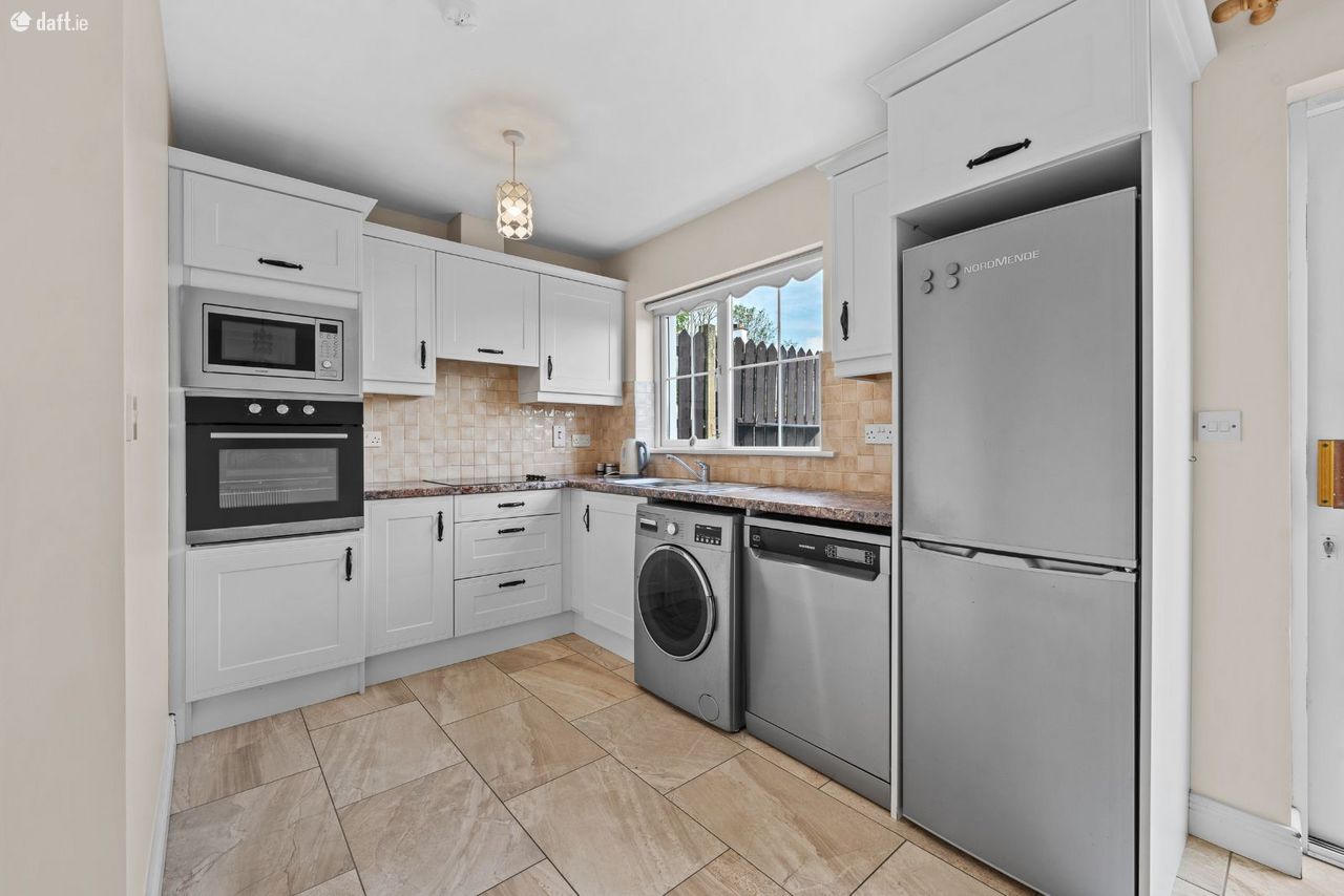 standing fridge/freezer and washing machine. Tiled flooring & tiled splashback. Sliding doors