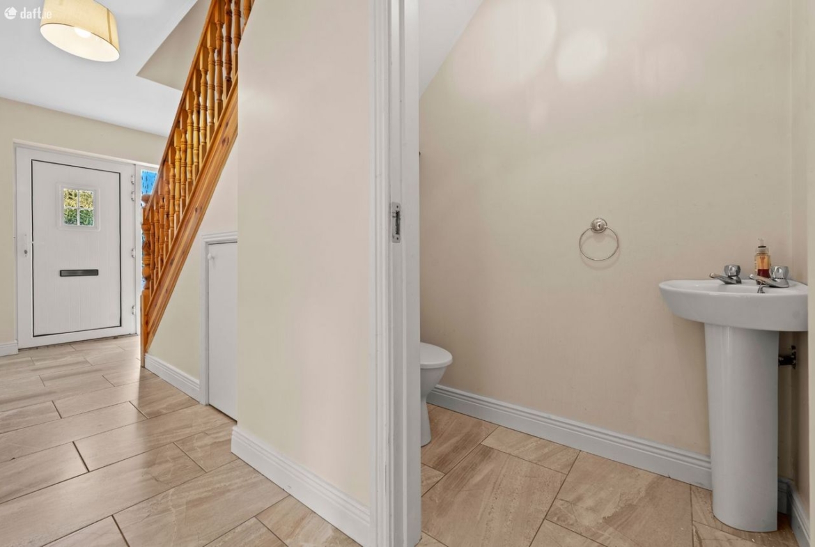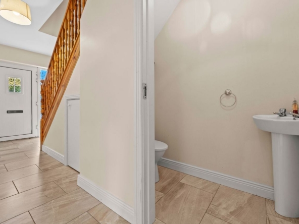 Guest Toilet: W.C. & wash hand basin, tiled flooring.
