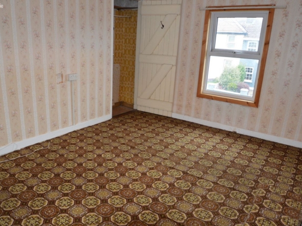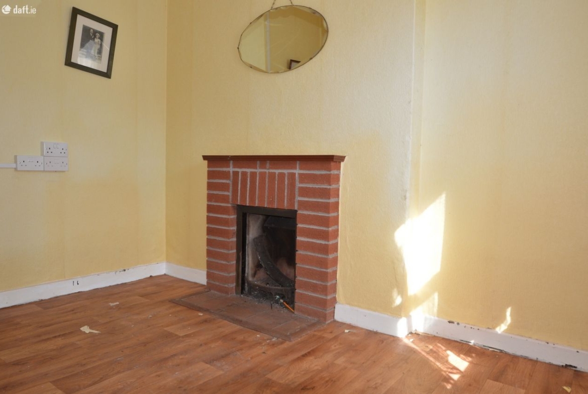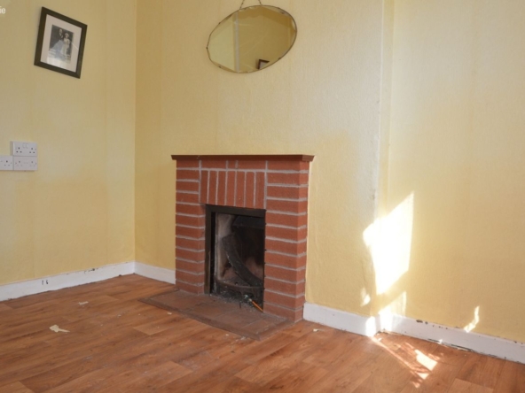 Sitting Room: Open fireplace. Laminate flooring and built in storage press. Front aspect.