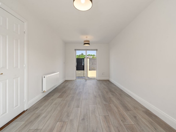 Bedroom 1: Bright, rear facing bedroom with laminate flooring.