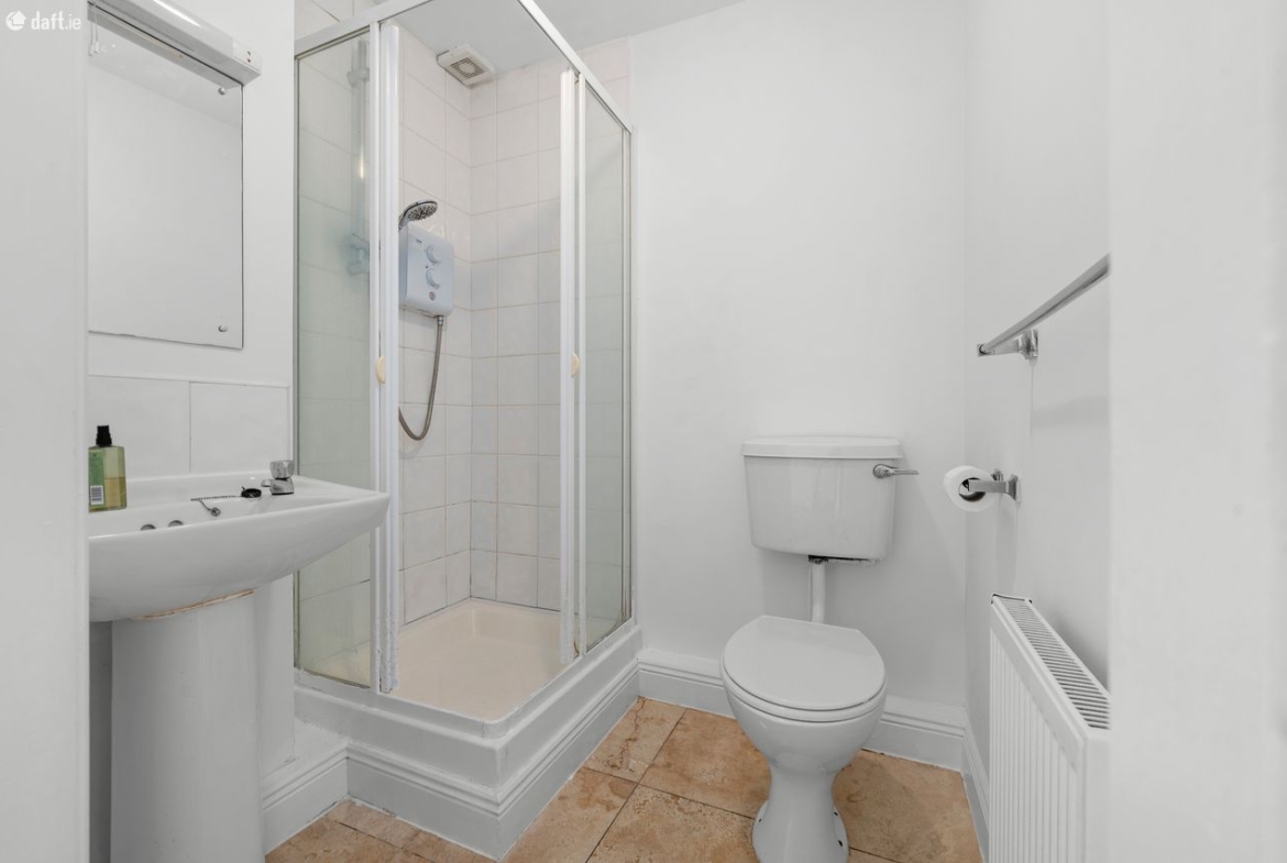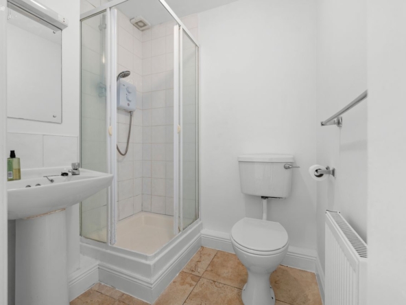 Ensuite: W.C., wash hand basin & electric shower. Floor, sink & shower area tiled.