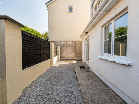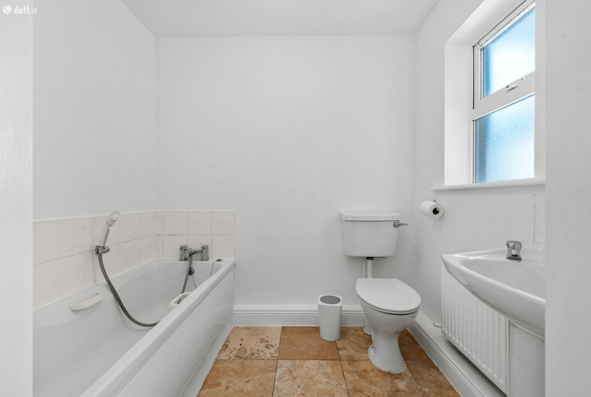 Both bedrooms are set to the rear for maximum tranquillity, with the main bedroom benefiting from an ensuite bathroom and the second offering generous built-in wardrobes. The main bathroom is tiled, fresh, and functional with a bath and shower combo, while a large hot press offers handy additional storage.