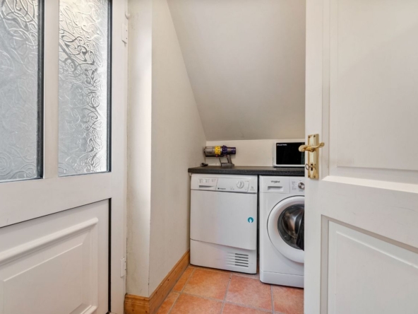 Utility: Plumbed for washing machine, fitted storage and rear access.