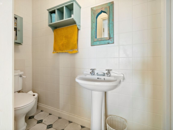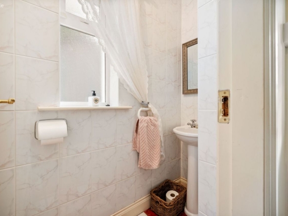 Guest Toilet: W.C., wash hand basin and fully tiled.