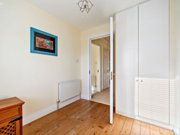 Bedroom 2: Rear aspect double bedroom with wood flooring.