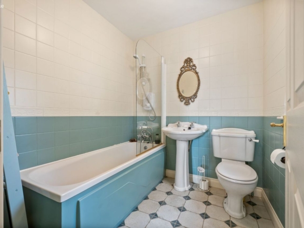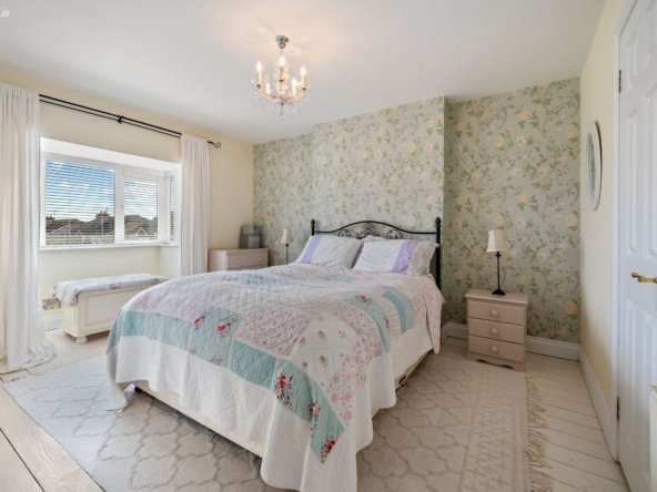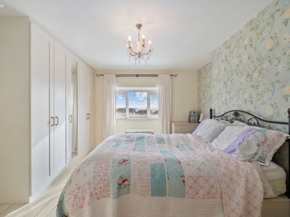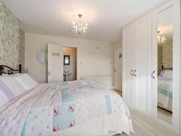 Master Bedroom: Double room with bay window, built-in wardrobes and fully tiled en-suite with electric shower.