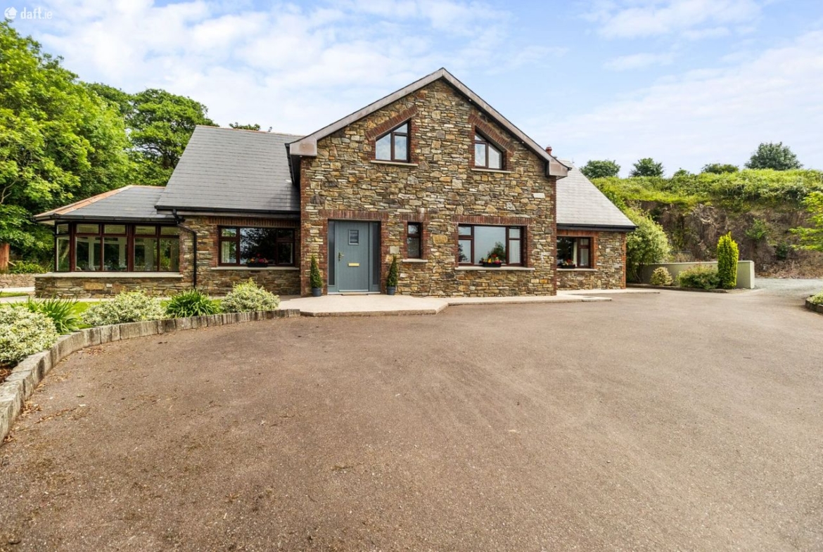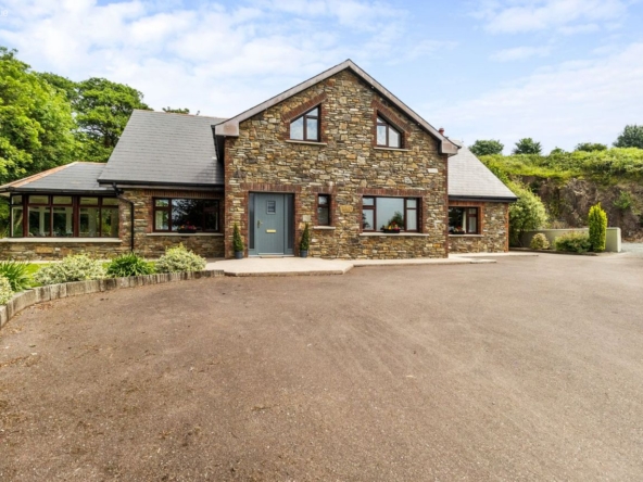 Teach na Carraige is an outstanding detached residence, offering an enviable blend of architectural elegance, substantial space, and exceptional privacy, all set on a mature c. 1 acre site in one of East Corks most picturesque locations. Extending to approx. 2,900 sq.ft., this impressive five-bedroom home has been thoughtfully designed to combine modern family living with the tranquillity and beauty of its natural surroundings.