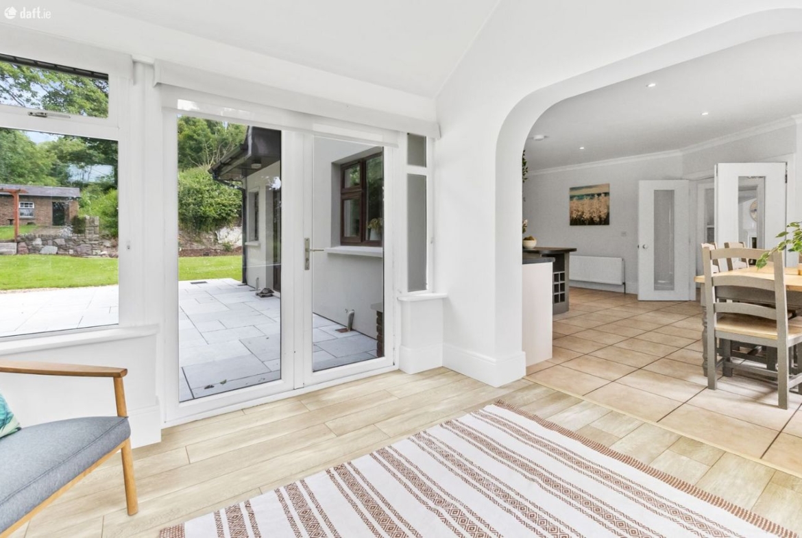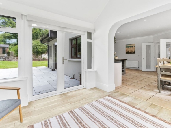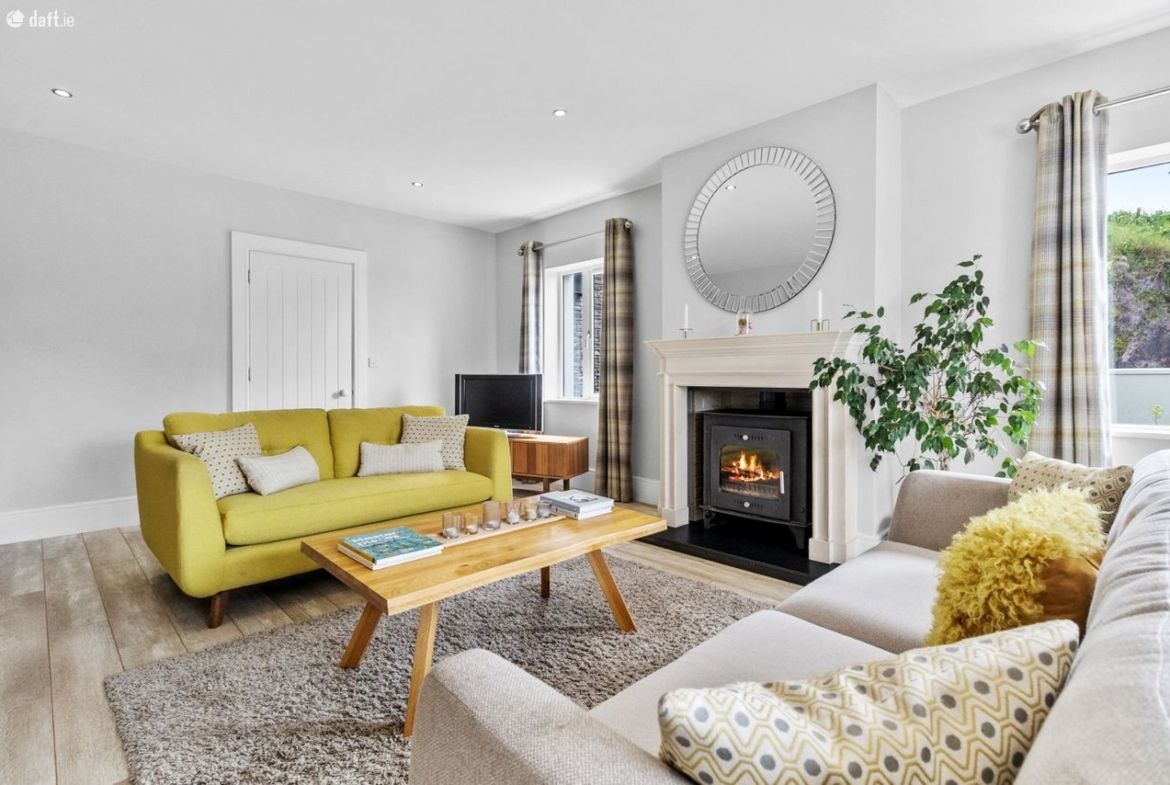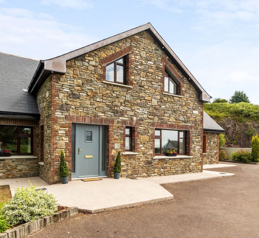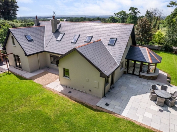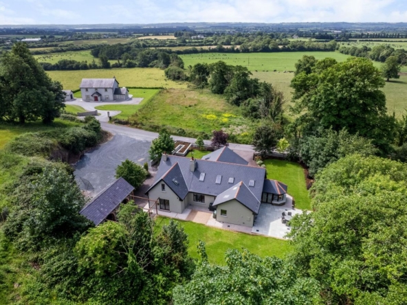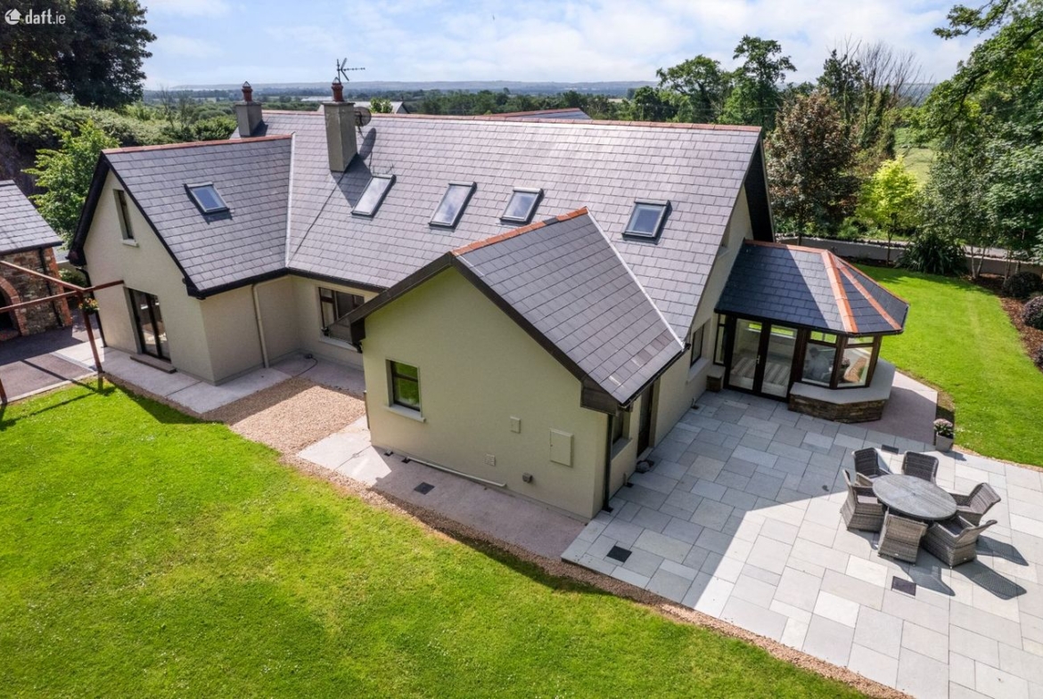 Positioned to command sweeping countryside views, Teach na Carraige enjoys a truly idyllic setting, complete with its own private stream and beautifully landscaped gardens that provide a wonderful sense of seclusion and serenity. The outdoor spaces include generous patio areas perfect for al fresco dining and entertaining, framed by mature trees and stone boundary walls.