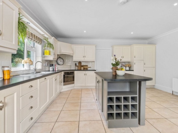 Open-Plan Kitchen/Dining: Well-fitted with ample storage and worktops, seamlessly connected to dining space. Tiled splash-back and flooring.