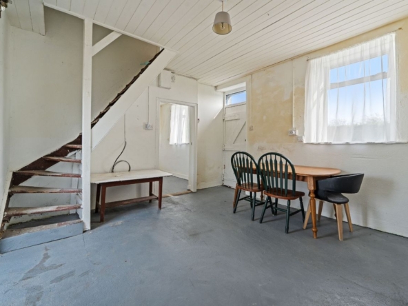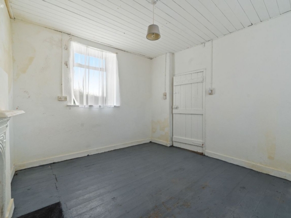 The property is without a bathroom and requires installation of sewage facilities as part of a refurbishment project. Windows are aluminium single-glazed, and while the house has mains water, it will require a complete programme of works.