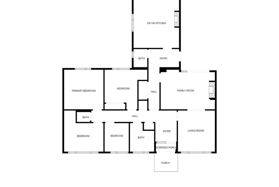 Foyer: Screened porch leading into the entrance foyer and central hallway, providing access to all main accommodation.