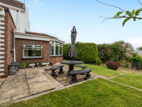 Rear Porch: Tiled flooring with French doors to rear garden. Access to utility room, sunroom and rear garden.