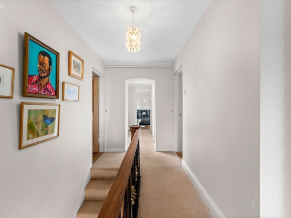Family Bathroom: W.C., wash hand basin, bidet and feature corner bath. Fully tiled and varnished pine flooring. Access to attic.