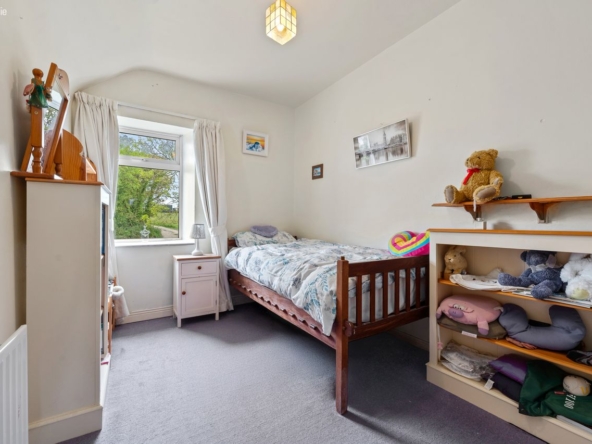 On the west side there is a rockery, lawn, patio/seating area, outside tap and large block built shed. On the east side, there is a lawned area, flowering shrubs, sheltered patio area and barna shed. Access to yard and land is via a passage located on the west side of the property with numerous sheds, out-houses and workshop. There are a further 12.5 acres of land; currently 5 acres are in forestry (which get a government grant of ‘750 p.a.) and 7.5 acres of excellent pasture land (which benefits from a government grant of ‘1,300 p.a.).