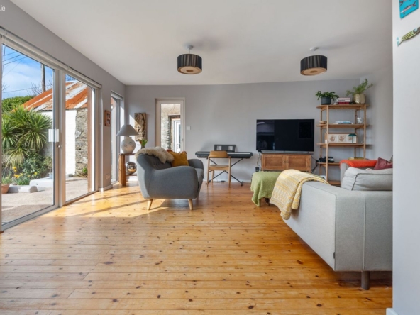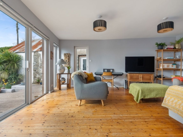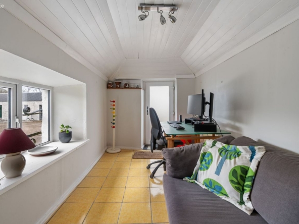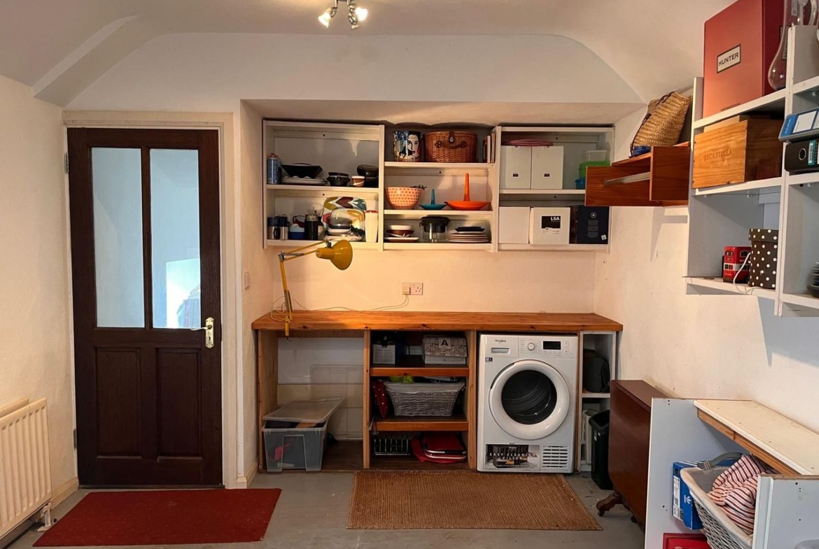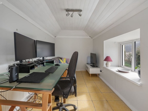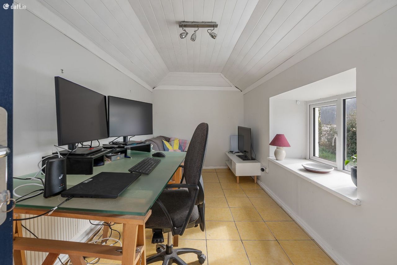 A series of three substantial outbuildings significantly enhance the overall offering. One is currently in use as a dedicated home office. A second provides practical storage and workshop space, while the third has been cleverly converted into a multi-functional area incorporating a utility space, bathroom, and informal hangout zone. Together, these structures extend the usability of the property well beyond the main house, offering genuine lifestyle flexibility.
