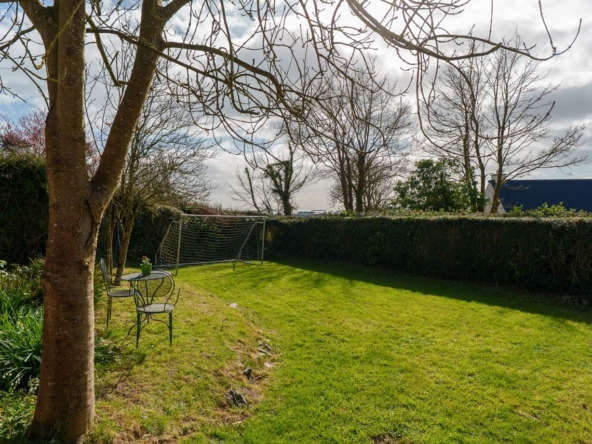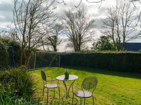 The site is south-facing, private, with a series of outdoor areas that move naturally between sheltered and open. Patio spaces sit directly off the house, designed for everyday use, while lawns and planted sections extend outwards, creating depth and variation across the site.