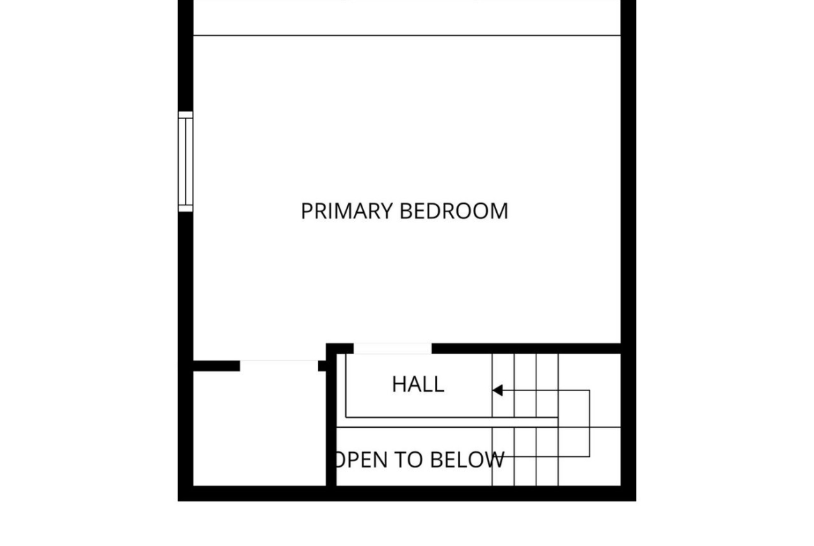 (Mezzanine): Elevated bedroom space with wood flooring and attic access.